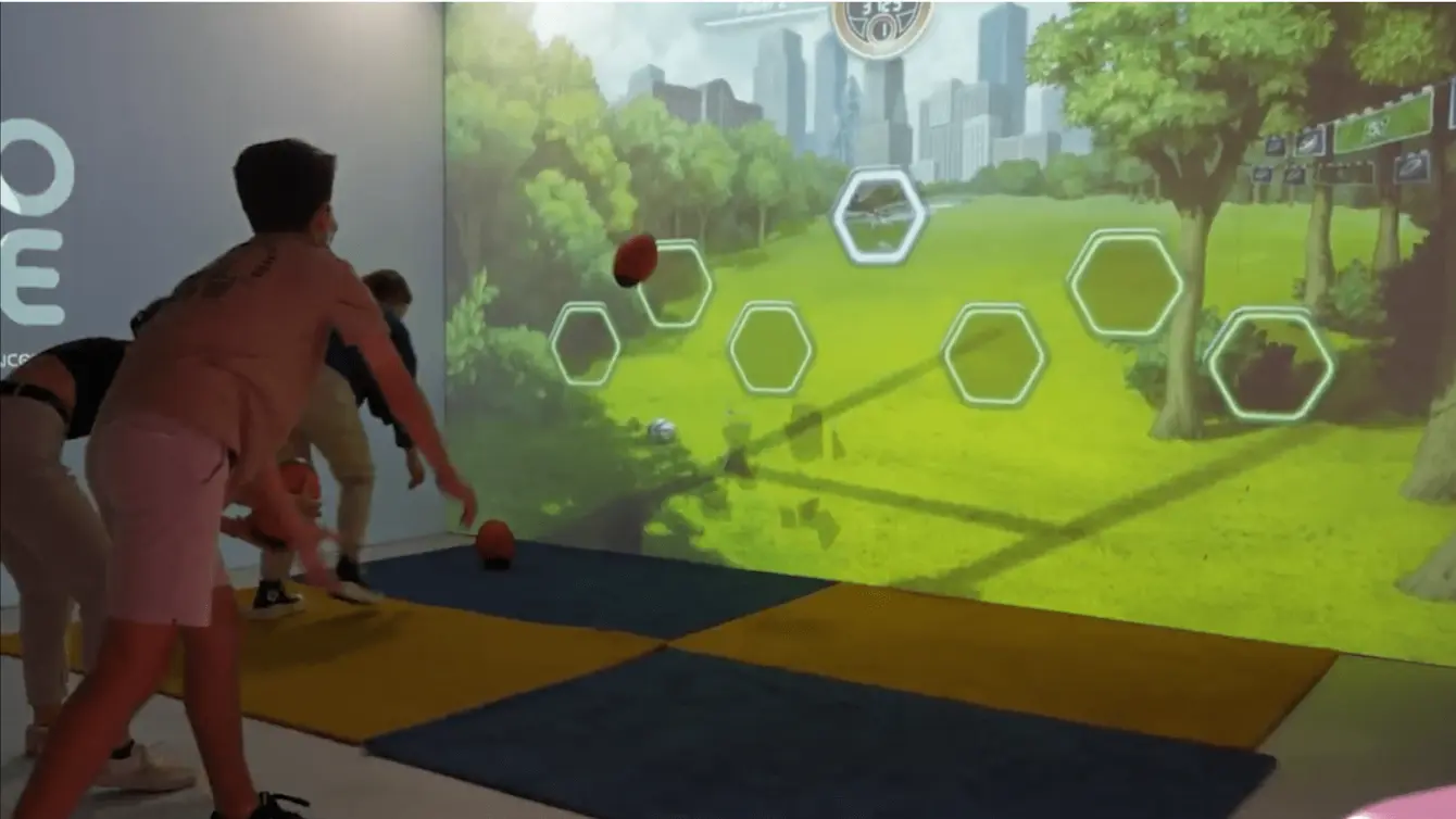 Le mur digital interactif est l’exemple parfait de cette fusion. Les participants courent, sautent et testent leurs réflexes sur une interface numérique haute performance.
